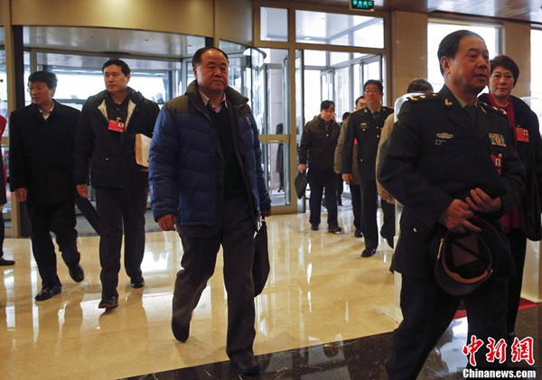 2月28日中午,新任全国政协委员、诺贝尔文学奖得主莫言现身驻地。